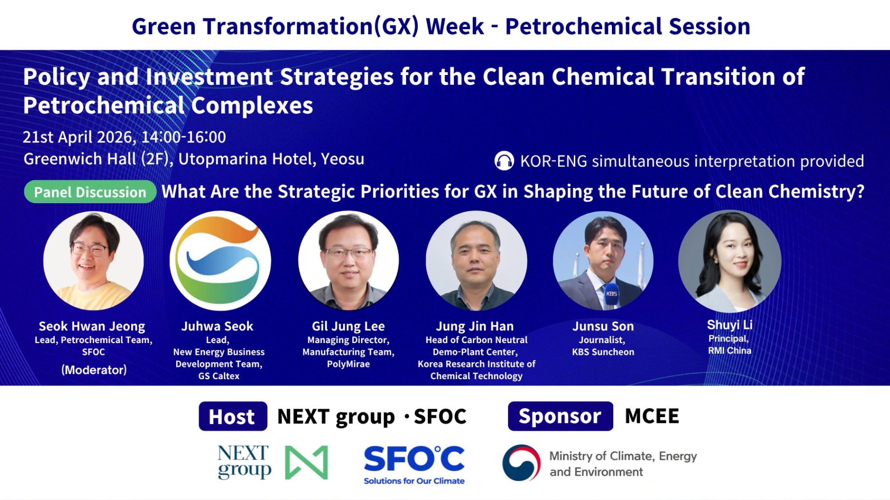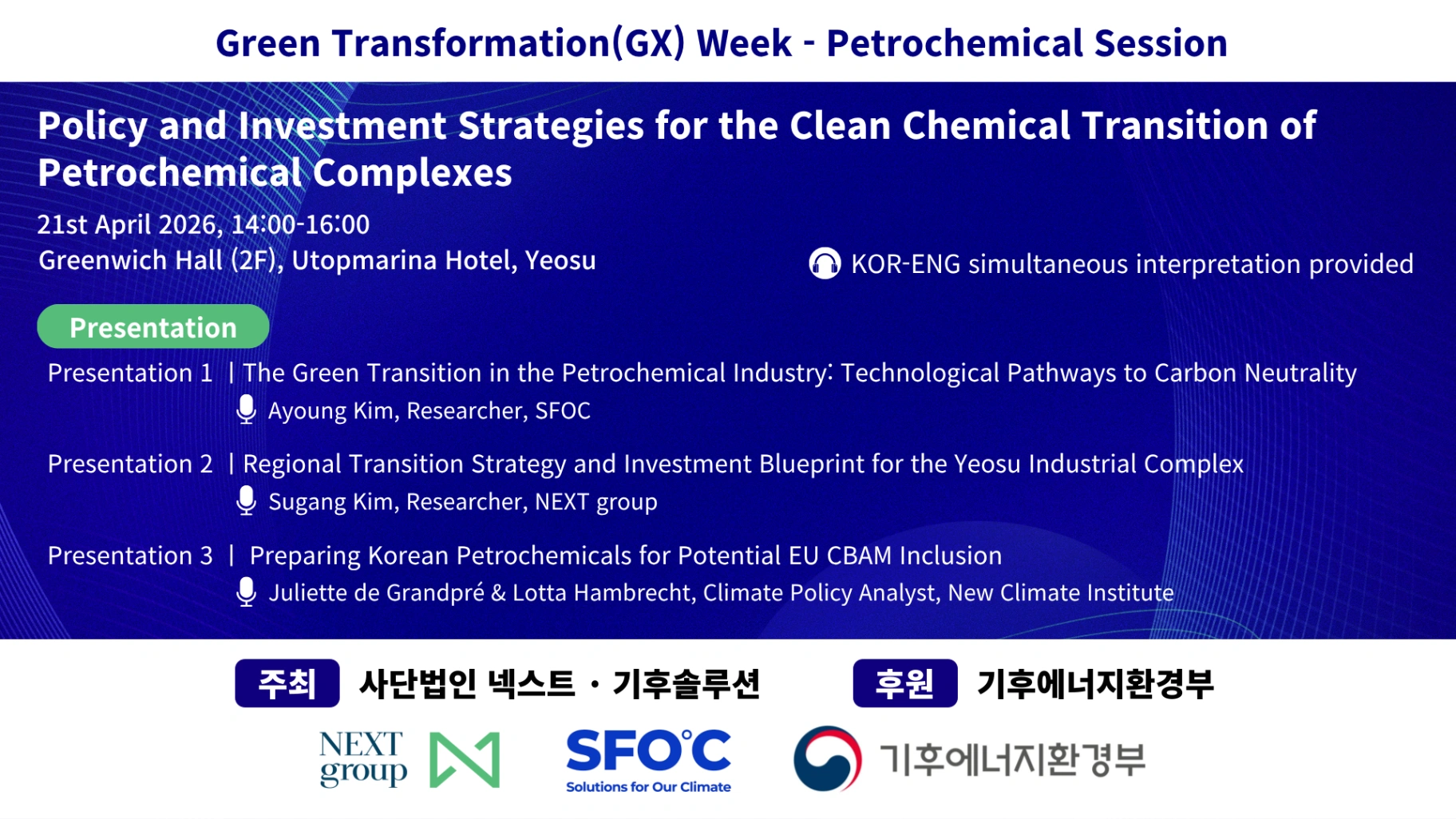 Held in conjunction with GX (Green Transformation) Week, this event will focus on regional strategies to transform Yeosu into a leading "Clean Chemical City." Experts from industry, academia, and the local community will be gathered to explore the detailed design and priorities of GX (Korea Green Transformation), aiming to maximize the potential for a sustainable transition in Yeosu.