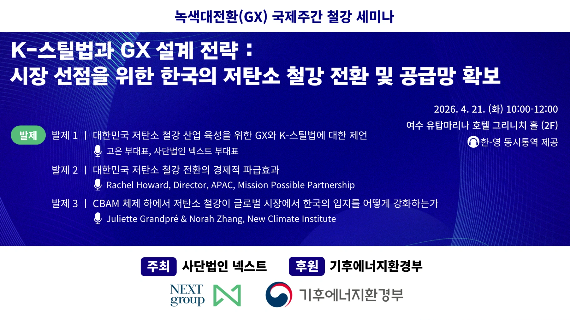 녹색대전환(GX) 주간을 맞아 개최되는 이번 행사에서는 한국 철강 산업의 글로벌 저탄소 기준에 맞춘 경쟁력 확보 방안을 심층적으로 논의합니다.