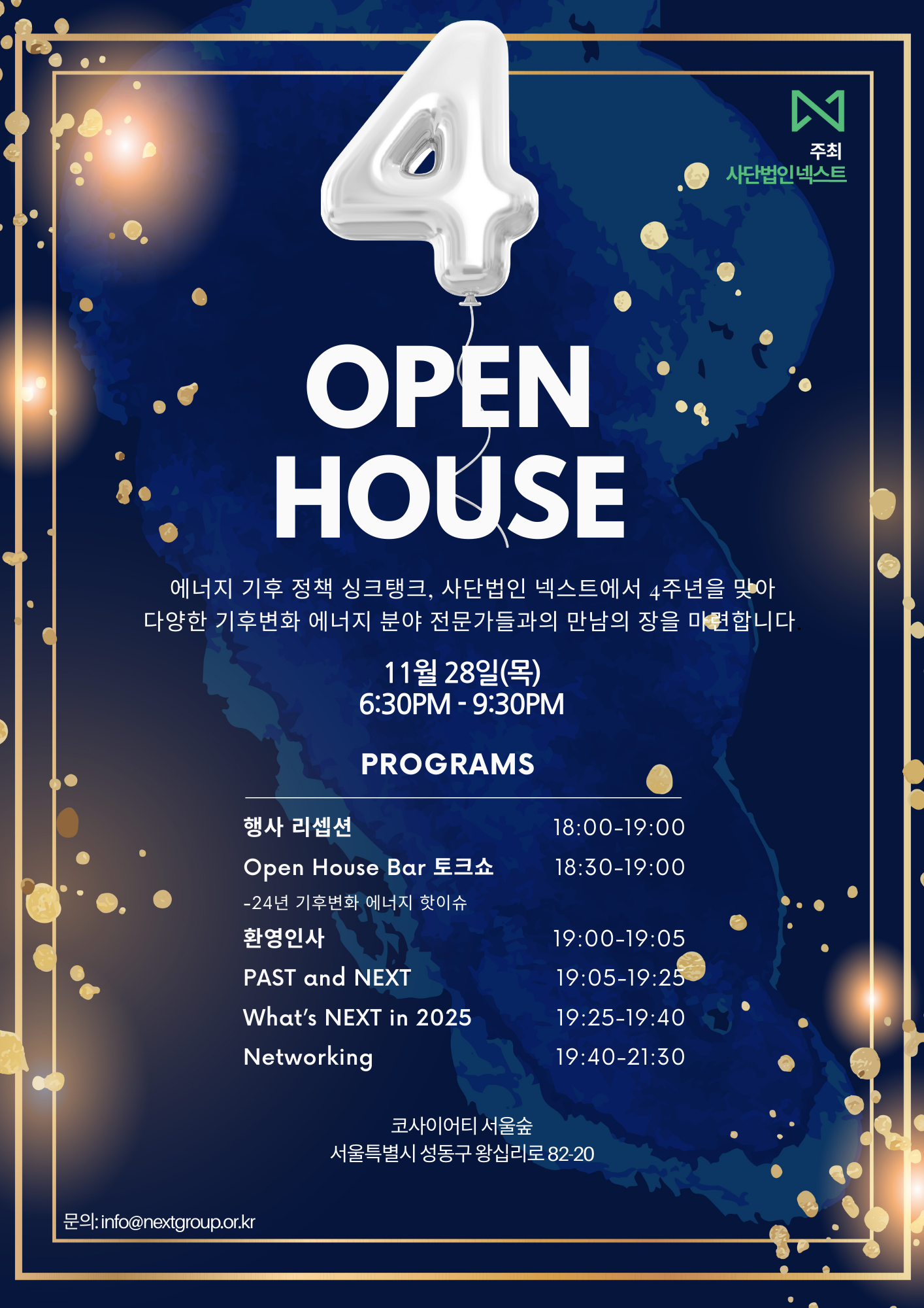 [오픈하우스] 사단법인 넥스트 4주년 기념 오픈하우스 개최(11.28)