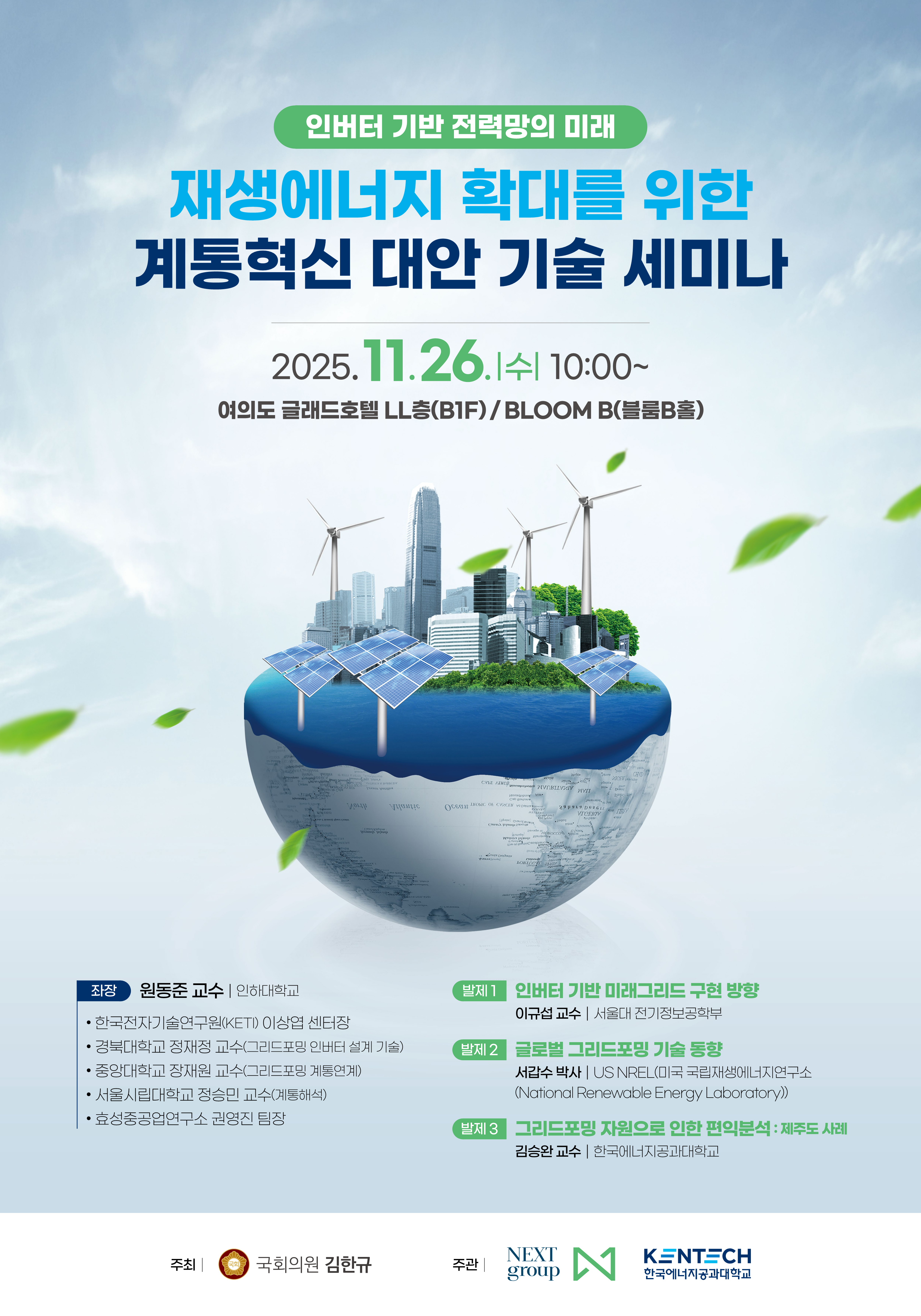 이번 세미나에서는 인버터 기반 그리드포밍 기술을 중심으로 미래 전력망 구현 방향과 국내외 최신 기술 동향을 함께 논의합니다.