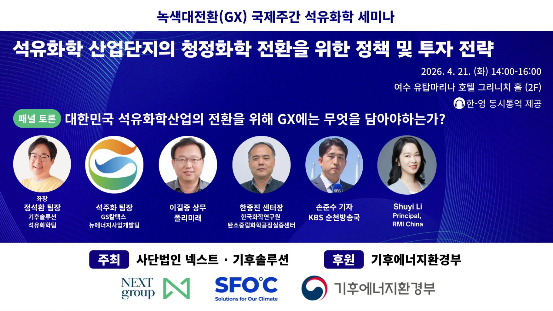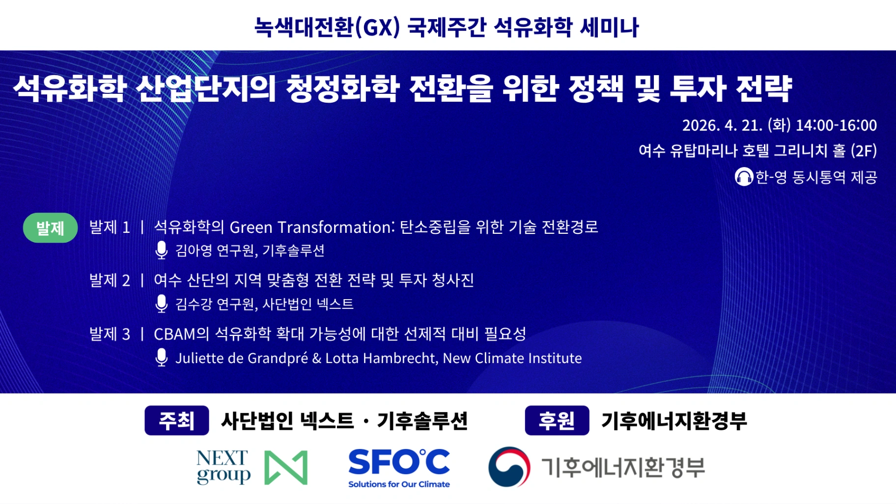 사단법인 넥스트(NEXT group)와 기후솔루션(SFOC)이 공동 주최하는 본 세미나에 관심을 가져주셔서 감사합니다.