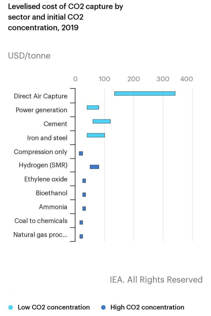 Levelised cost of CO2 capture by sector▲ 이미지 : ⓒ IEA